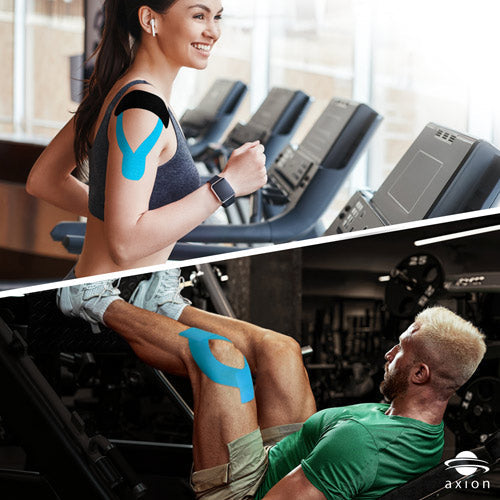 Die Anwendung an verschiedenen Körperstellen erfordert oftmals eine unterschiedliche Schnittform der Tapes, wie z.B. das Y-Tape, das X-Tape, das I-Tape oder das Oktopus-Tape (von links nach rechts). Diese und viele weitere Zuschnitte sind mit den axion Tapes ganz einfach